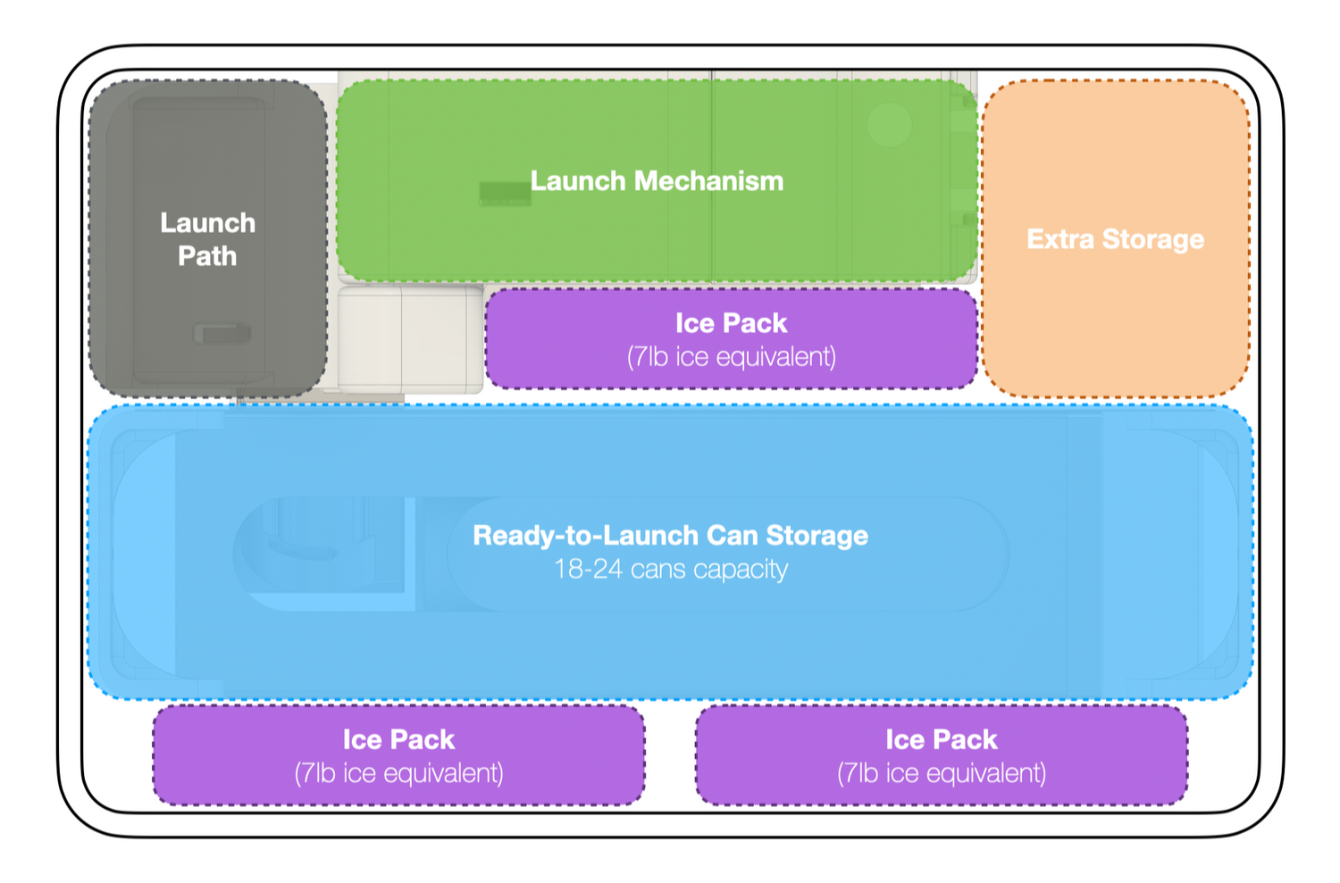 The images shown here feature our fully functional retrofit prototypes—proof that the BeerMe launch system works, and works brilliantly. Production units are going even further: a completely custom design inside and out, tailored to seamlessly integrate our patent-pending launcher and maximize can capacity. This isn’t just another cooler upgrade—it’s a reinvention of what a cooler can be.